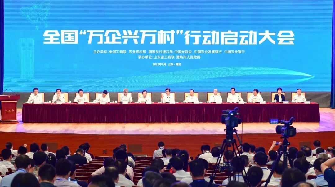 7月16日,全国工商联、农业农村部、国家乡村振兴局、中国光彩会、中国农业发展银行、中国农业银行在山东省潍坊市共同召开全国“万企兴万村”行动启动大会。会议传达了中共中央政治局委员、国务院副总理胡春华和中共中央书记处书记、中央统战部部长尤权对“万企兴万村”行动的批示。全国政协副主席、全国工商联主席高云龙出席会议并讲话。
