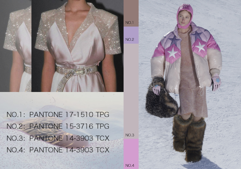 数字艺术家lucy Hardcastle雪地湖泊为我们带来柔和的数字感官,落雪的交互展现了暖色像的数字空间。正如Miu Miu2021秋冬秀场所展现出的雪地奇景,宏达的场景让色彩与环境交互。以暖调的中性色为主,结合粉色、紫色邻近色的应用更契合未来少淑休闲方向的色彩应用。