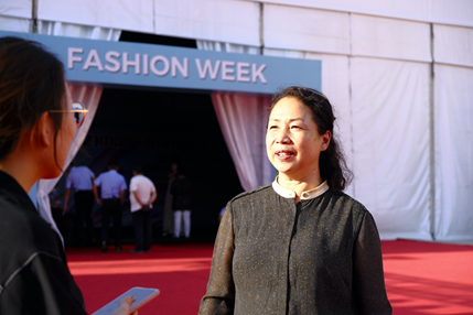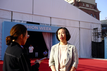 在“天津工业大学&阿诗月”联合职业装秀结束之后,河南省服装协会相关负责人对天津工业大学代表老师进行了采访。