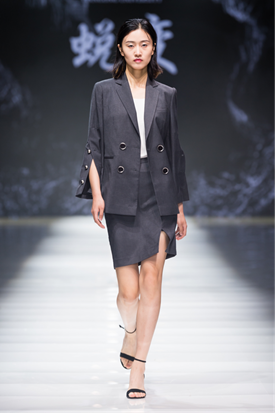 2021年5月24日下午,在中国(河南)国际大学生时装周,举行了“天津工业大学&阿诗月”联合职业装秀,为在场的观众带来了一场以“职业装”为主题的视觉盛宴。该联合职业装秀是由天津工业大学与河南省宇达服饰科技集团旗下品牌阿诗月联合发布。在本次联合职业装秀中,天津工业大学以“蜕变”为主题,总计发布11个系列。首个系列《蜕变》,曾在“匠心青春梦 • 大学生职场装设计技能大赛”中荣获一等奖,是服装设计与工程专业副教授许君老师所指导,服装设计与工程专业2018级学生钟丹淇及其团队所设计。该作品体现了时尚和实用兼具的设计,以醒目的装饰细节、轻薄硬挺的西服面料、精致的拉链纽扣等辅料……在细节之处彰显作品的创意感。之后的10个系列均来自于“匠心青春梦 • 大学生职场装设计技能大赛”。所有系列,聚焦于即将步入职场的大学生,通过将不同服装元素及青春设计理念融入到职业套装、职业连衣裙、商务晚宴装中,打破传统职业装刻板束缚之感,呈现出属于大学生职场装的青春之美。