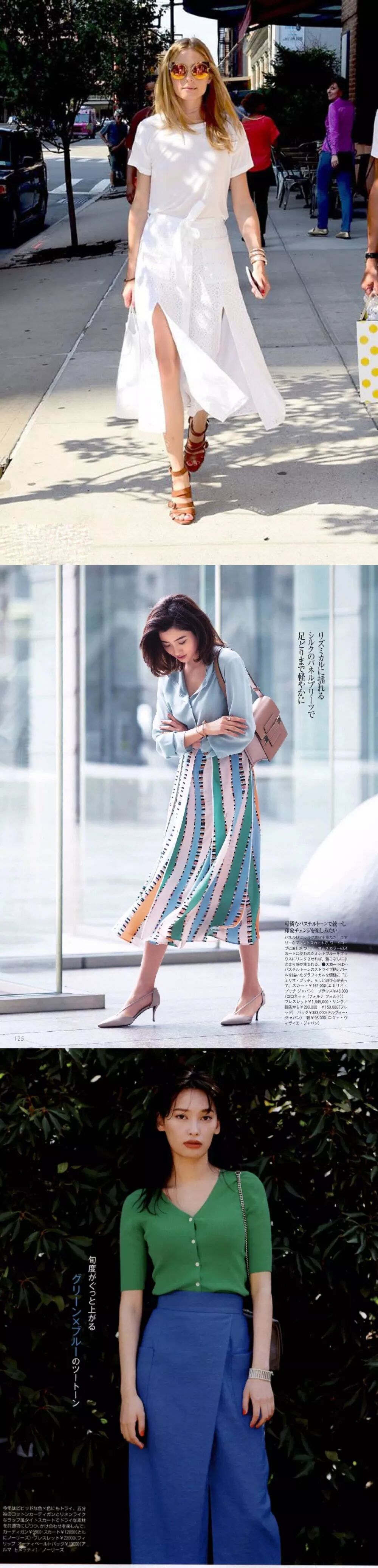 铅笔裙、A字裙、百褶裙等等,各种裙型都可以套用这个色彩组合。