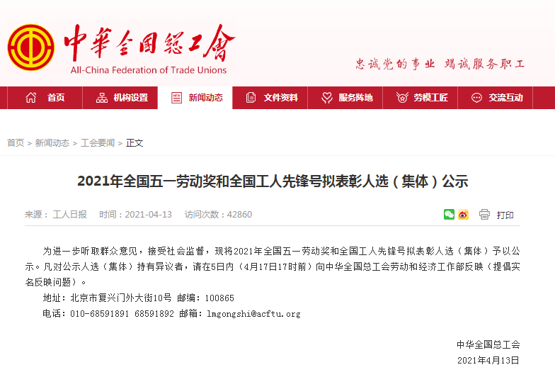 中华全国总工会日前发布《2021年全国五一劳动奖和全国工人先锋号拟表彰人选(集体)公示》,其中我省纺织服装行业多名个人和集体上榜↓↓↓