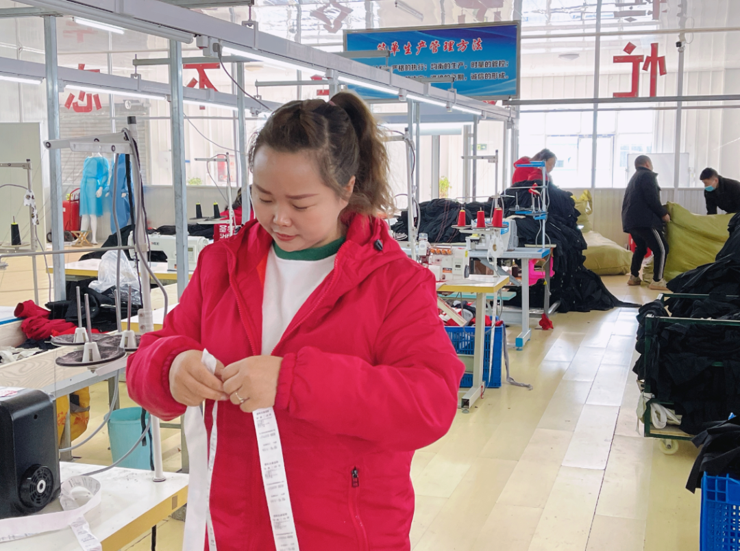 乐观活泼,为人和善,聪明爽快,手脚麻利,这是张兰留给我的第一印象。今年是张兰在圣宇服饰工作的第三年,圣宇服饰是马登云总经理2016年携资带技回家乡创办的扶贫工厂,车间于2018年正式投产,算起来,张兰也是圣宇服饰的第一批老员工了。