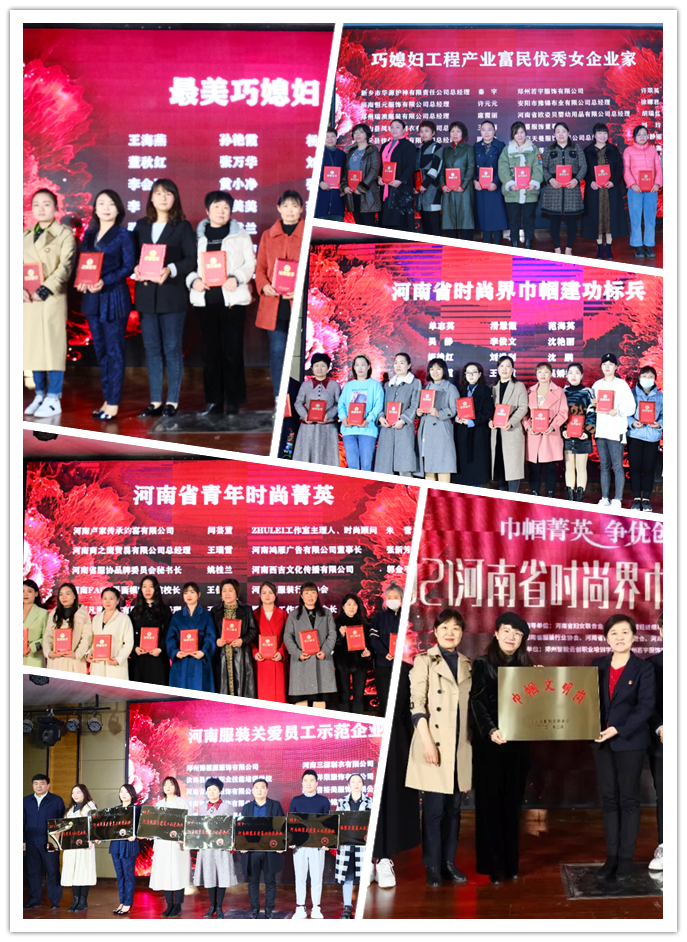 河南省服装行业协会常务副会长张勋代表行业向大家表示衷心的感谢和热烈的祝贺!张勋会长在致辞中讲到,河南“巧媳妇”的拼搏与奉献,使全省服装行业得到了长足发展。“十二五”以来,“巧媳妇工程”全面实施,特色园区热火朝天,“中心工厂+卫星工厂”遍布各地,承接产业转移、订单转移如火如荼,行业规模跨上了3600亿台阶,正在向万亿产业、世界工厂奋进。在各级党委政府正确指引,企业领导科学管理和行业积极引领下,全省时尚业全体女性企业家和职工全面融入扶贫攻坚、乡村振兴和县域经济高质量发展,为构建优质产能,打造万亿产业发挥了无以替代的中坚作用,充分彰显了新时代巾帼精英投身时尚,奋发创业,开拓进取的精神风貌,得到了行业和社会的广泛认可和推崇。河南省服装行业协会专职副会长赵冬宣读表彰决定。经过推荐、选拔、评审等各阶段紧张工作,“河南省时尚界巾帼菁英”宣树活动决定授予薛盼盼等141位同志“最美巧媳妇”称号;授予河南棉娃娃纺织服饰有限公司总经理高静等10位同志“河南省时尚界十大女杰”称号;授予新乡市华源护神有限责任公司总经理秦宇等19位同志“巧媳妇工程产业富民优秀女企业家”称号;授予单志英等73位同志“河南省时尚界巾帼建功标兵”称号;授予河南棉娃娃纺织服饰有限公司等39个企业和机构“河南服装关爱员工示范企业”称号;授予丁彩霞等30位同志“河南省青年时尚菁英”称号。河南省妇女联合会妇女发展部部长张俊美为河南省服装行业协会综合办公室颁发由中华全国妇女联合会授予的“巾帼文明岗”荣誉称号。