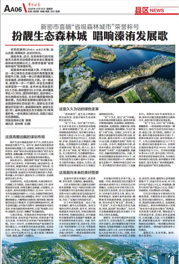/ 喜报!新密市喜摘“省级森林城市”荣誉称号 扮靓生态森林城 唱响溱洧发展歌