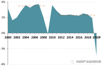 图1:2000~2019年发达和发展中国家GDP增长情况