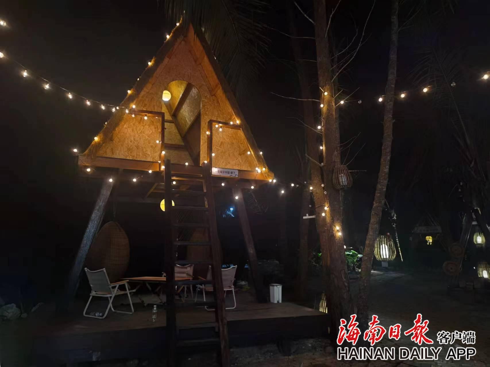 “看,和你上次来又不一样了吧!”走进民宿门前的椰林沙滩,冯清雄高兴地向海南日报记者指出沙滩配套设施的新变化:相比刚开业时,在木质健身区、树屋休闲区等之外,一辆约5米长的全新餐车停靠在沙滩边,可提供咖啡、奶茶等各类饮品及多种餐食小吃;不远处,一间木质椰林书屋已经初步完成建设,正在进行内部装修,将来可作为本村孩童的公益文化学习场所;洗手洗脚处、公共卫生间等基础设施一应俱全。