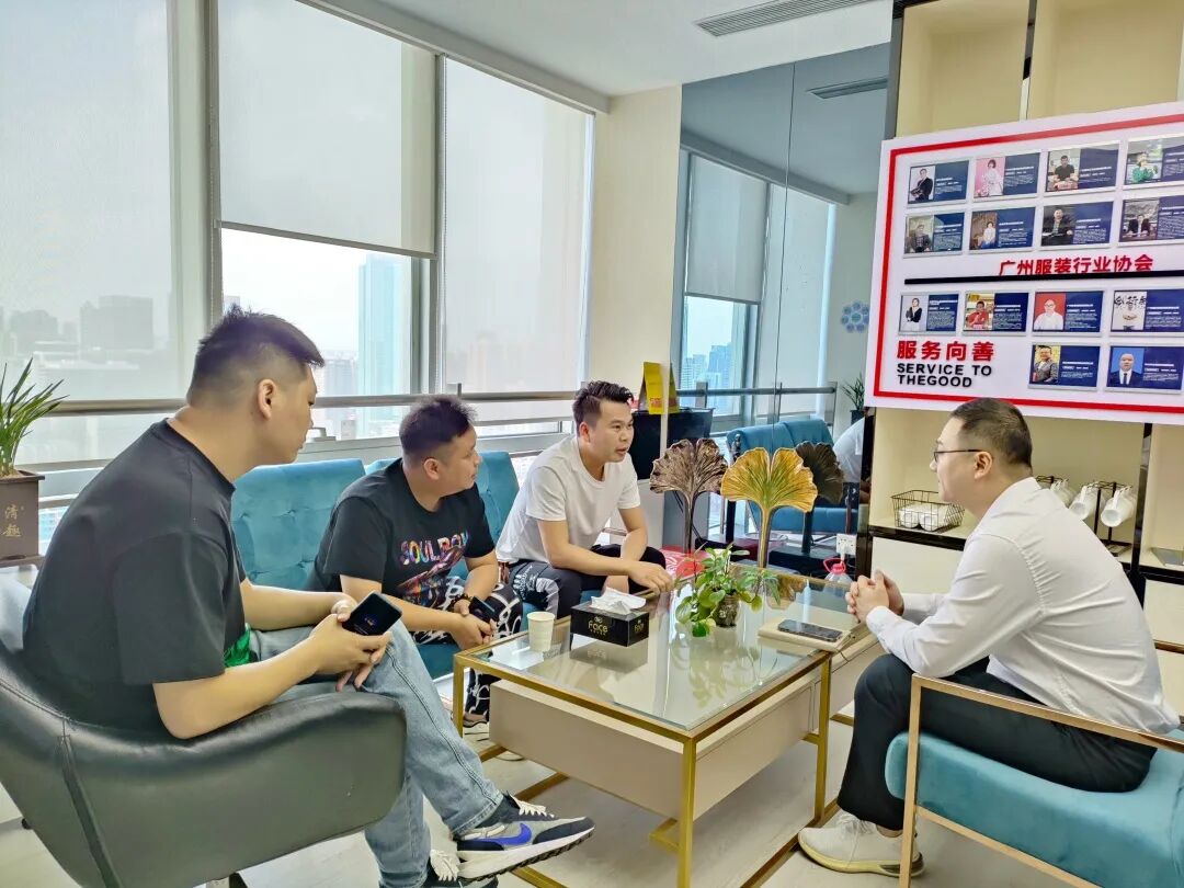 5月31日,服装设计师计文波老师携同广州市工信局消费品工业处姚处长到访,我会会长王志峰、执行会长兼秘书长张寿英、会员部长王宁成与会员部周岚萍接待。