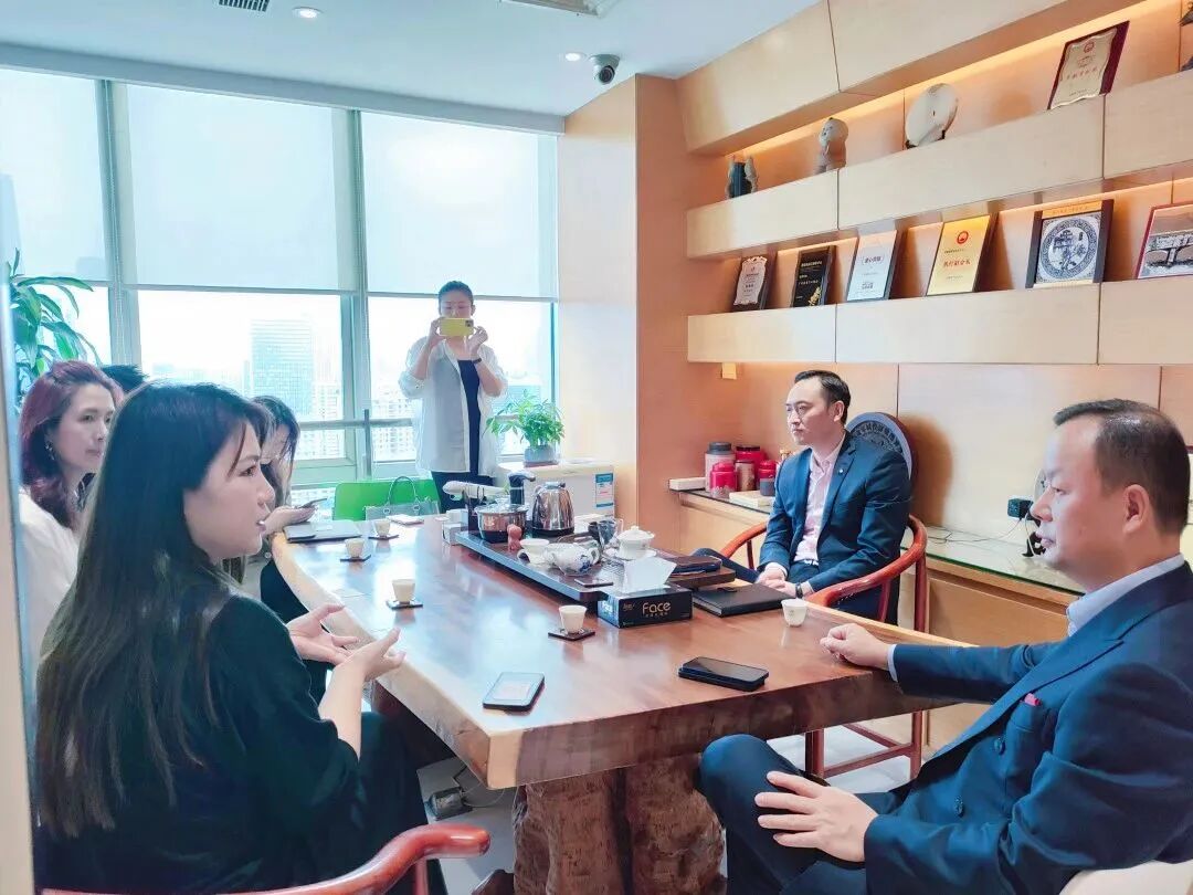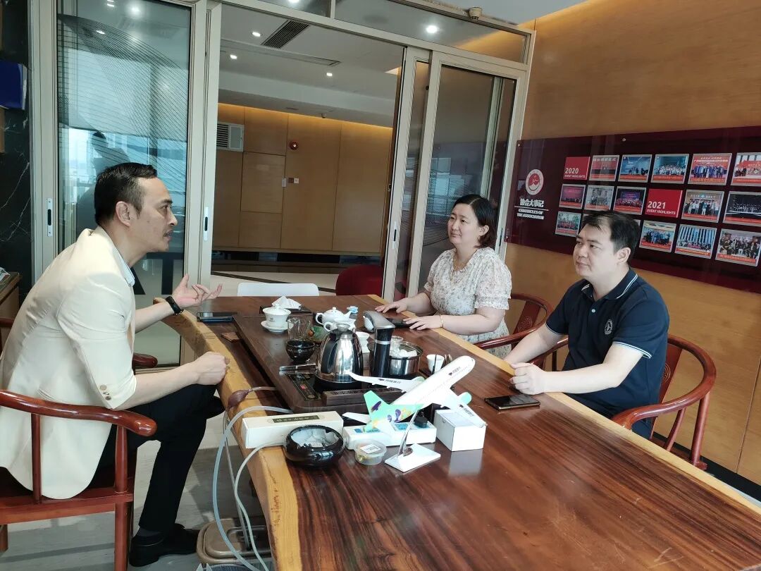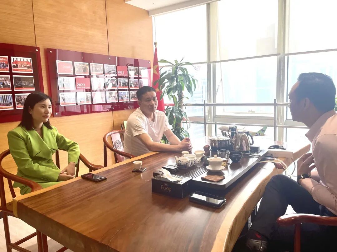 随后,秘书长张寿英带领一行来宾会见我会会长王志峰,通过与王会长交流,众人更明确我会的发展方向和服务重点,双方表示期望今后深化合作交流。