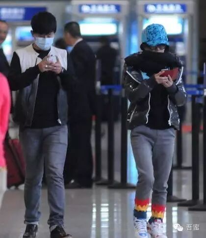 你们猜猜张杰旁边这位是谁呢?那就是娜姐一枚啦,她真的是裹成个粽子出门。