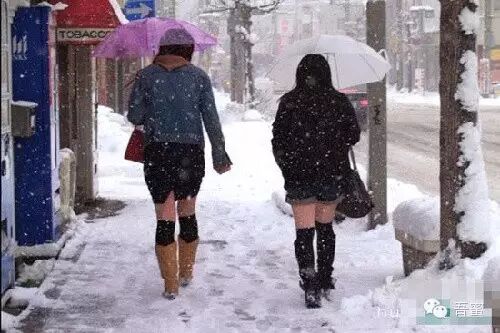 而在日本冬天是会下鹅毛大雪的国度里,日本女生还是会光·腿·穿裙纸,看到这图蜜蜜也是...在日本,这种裸腿的穿法,叫生腿。那么她们真的是不冷吗?而她们的回答是:“早就没有知觉了”。蜜蜜听到这个回答也是醉了,不过日本的供暖设施齐全,只要进了室内,不管是商场还是车站,小卖店还是饭馆,都会感觉温暖如春。而且她们从小就进行抗冻训练,她们在严冬这样穿早已习以为常了。