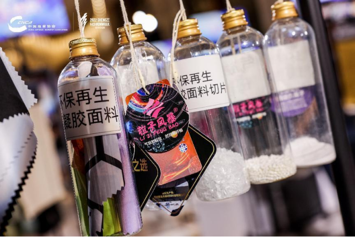 同样深耕低碳绿色可持续面料的还有杭州永盛集团有限公司,其将回收PVB玻璃膜进行循环再生,提纯为RPVB,结合后整理工艺技术将RPVB再生材料与纺织面料结合,制成各种功能性面料。总裁黄筱莉还在现场带来公司的“明星”产品——永久高抗紫外防护面料,面料纤维抗紫外线透过率配合织物设计可达到常规抗紫外纤维10倍,已通过目前世界上最严苛的美国AATCC-183标准防紫外线测试,并且防汗渍、抗油污等性能也优于其他产品。法国PROMOSTYL趋势研究与咨询中国区负责人黄晶
