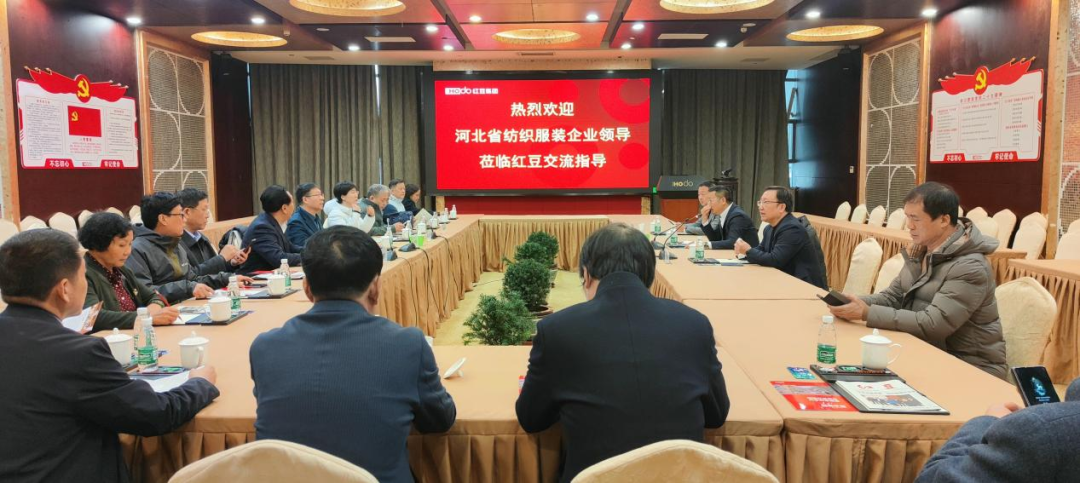 董事长周宏江: 红豆的西装、西裤、衬衫、内衣等核心尤其是针织,红豆比较完善的是针织,从纺纱、到印染、到成衣基本是完整的产业链,其他的有自己的加工厂,有一部分外包和整合。总经理李淑萍: 红豆在柬埔寨王国联合中柬企业共同开发了11.13平方公里的西哈努克港经济特区,我们企业目前也有向柬埔寨及东南亚地区的发展与布局,红豆可以组织我们河北的纺织服装企业去参访一下,我们可以合作。