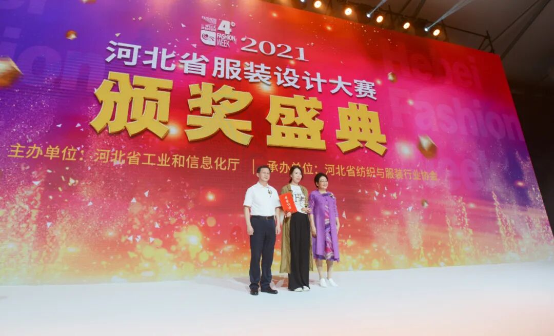 在开幕式上,河北省工业和信息化厅消费品工业处副处长谷米公布了“2021年度河北省服装设计大赛”的获奖名单,领导嘉宾为入选品牌和企业,以及获奖的服装设计师进行了颁奖。