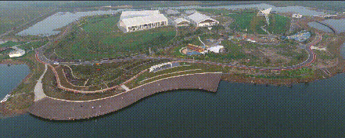 位于沧东生态公园的亲水平台,这里环境优美、风景怡人,在这里你可以享受绿意的环抱和水波的映照,同时,这里也是开幕式舞台所在的位置。