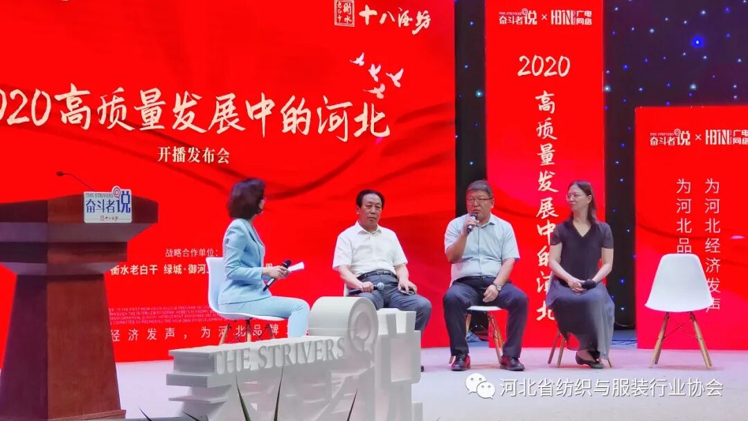 8月28日,河北省纺织与服装行业协会会长刘连红、秘书长赵建钢,前往河北广电网络产业中心四楼演播大厅,出席“2020高质量发展中的河北”《奋斗者说》栏目开播发布会。