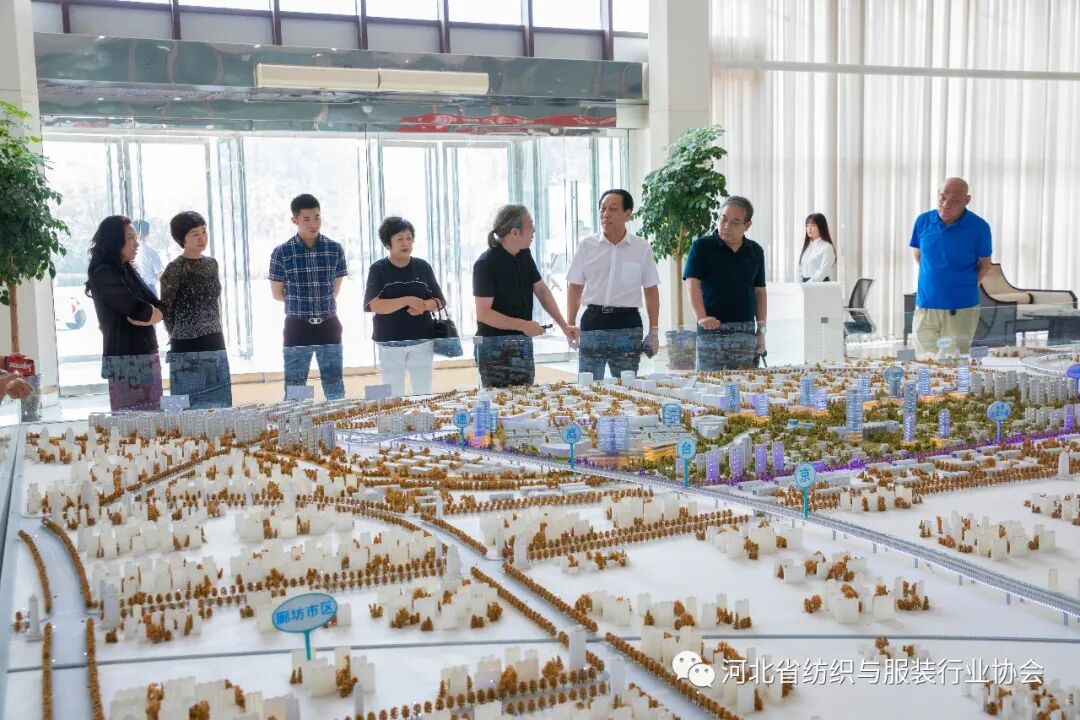 7月27日,河北省纺织与服装行业协会会长刘连红、秘书长赵建钢、副秘书长祁志军等协会领导与河北大喜文化传播有限公司董事长张庆霞,前往位于廊坊市永清县的云裳小镇(原永清国际商贸中心)进行了实地参观调研。