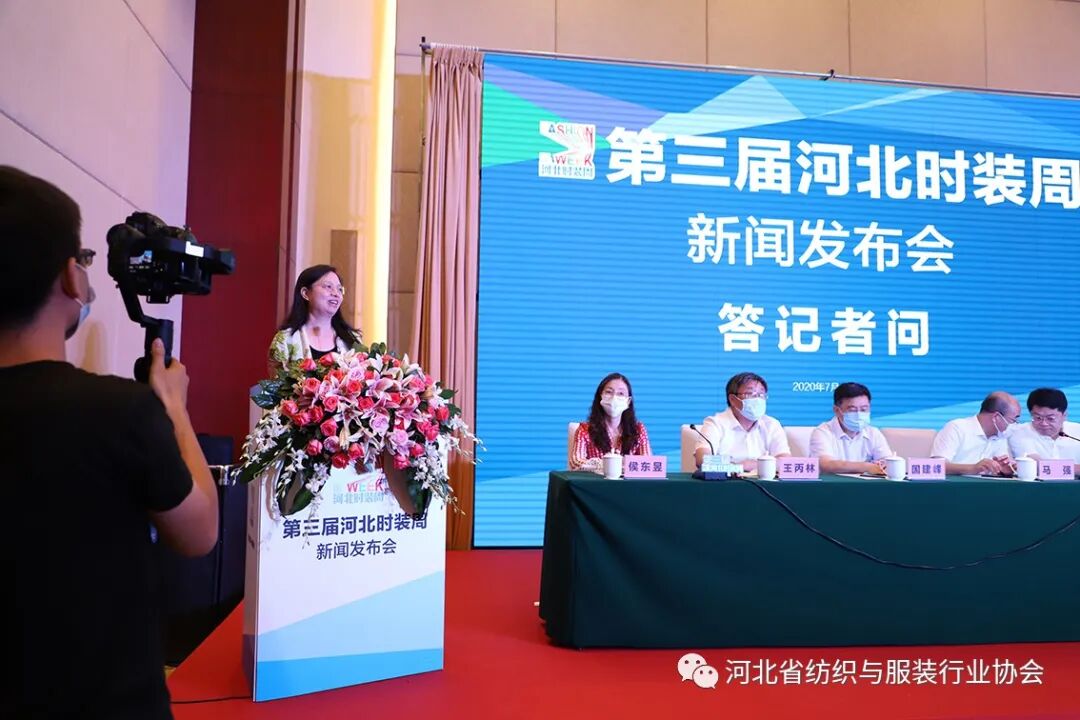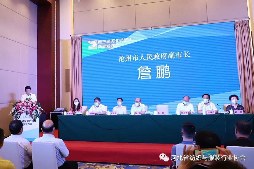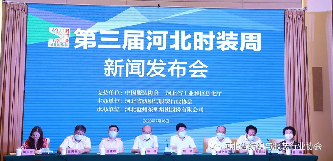 7月16日上午,第三届河北时装周新闻发布会在石家庄太行国宾馆召开。沧州市人民政府副市长詹鹏、河北省工商业联合会副主席马强、河北省工业和信息化厅消费品工业处处长刘永青、河北省市场监督管理局质量处处长国建峰、第三届河北时装周组委会主任、河北省纺织与服装行业协会会长刘连红、沧州市工业和信息化局局长王丙林、第三届河北时装周组委会主任、河北沧州东塑集团股份有限公司党委书记肖燕、河北省纺织与服装行业协会设计师委员会主任、河北科技大学纺织服装学院副院长侯东昱等领导嘉宾出席了本次新闻发布会。