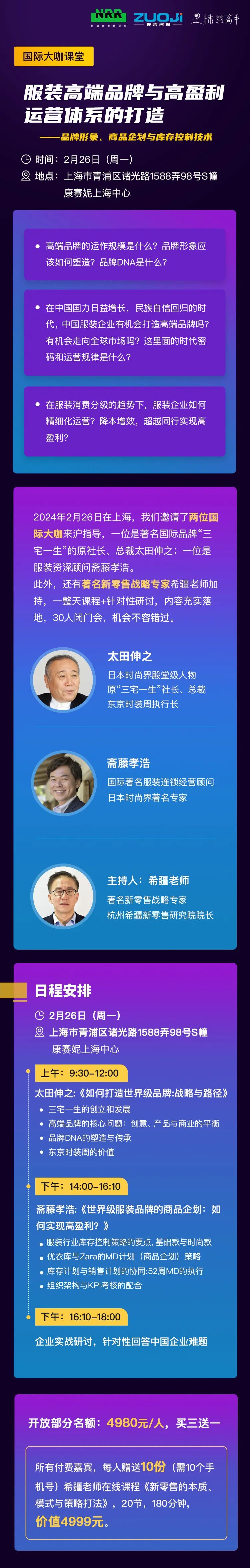 会员福利|上海时尚行业精英课堂:《服装高端品牌与高盈利运营体系的打造》入场券!