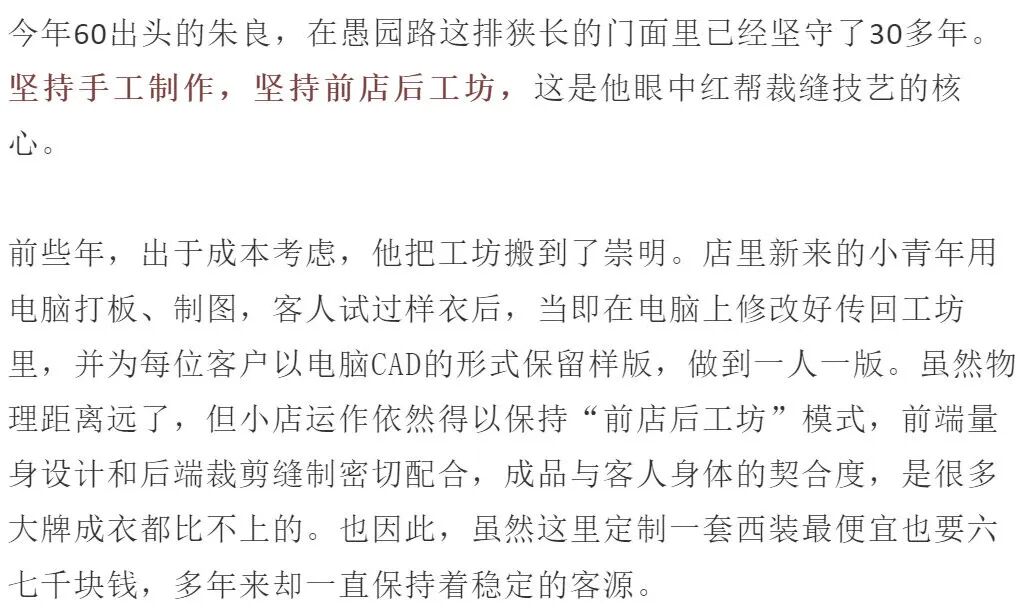 时至今日,在上海街头的高端西服定制店里,“红帮裁缝”依然占据着主流。