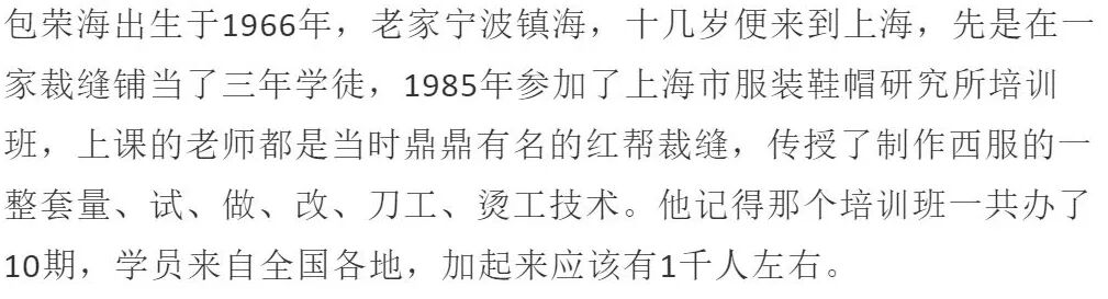 清末民初,当时的通商口岸宁波传入了英国的制衣技术,很多当地裁缝开始给洋人做西装。