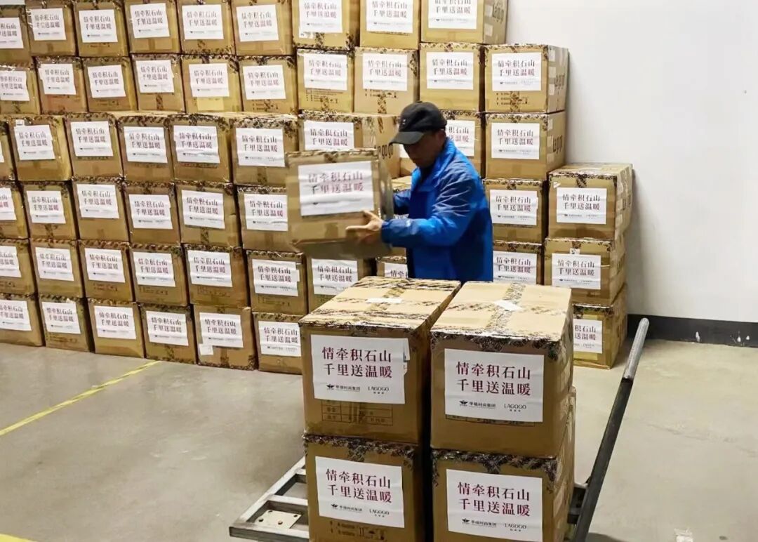 在捐赠物资准备过程中,企业秉持“品质至上”的原则,从全国门店调回羽绒服,汇总到昆山仓库进行全方位检验,确保捐赠品的质量安全。