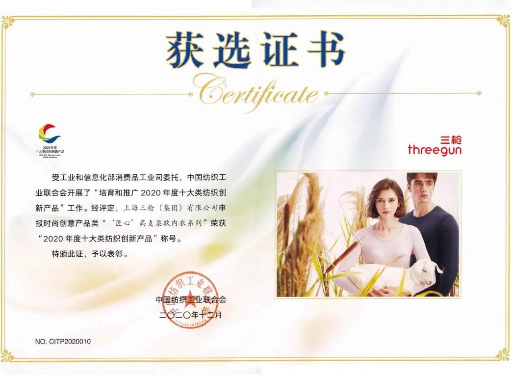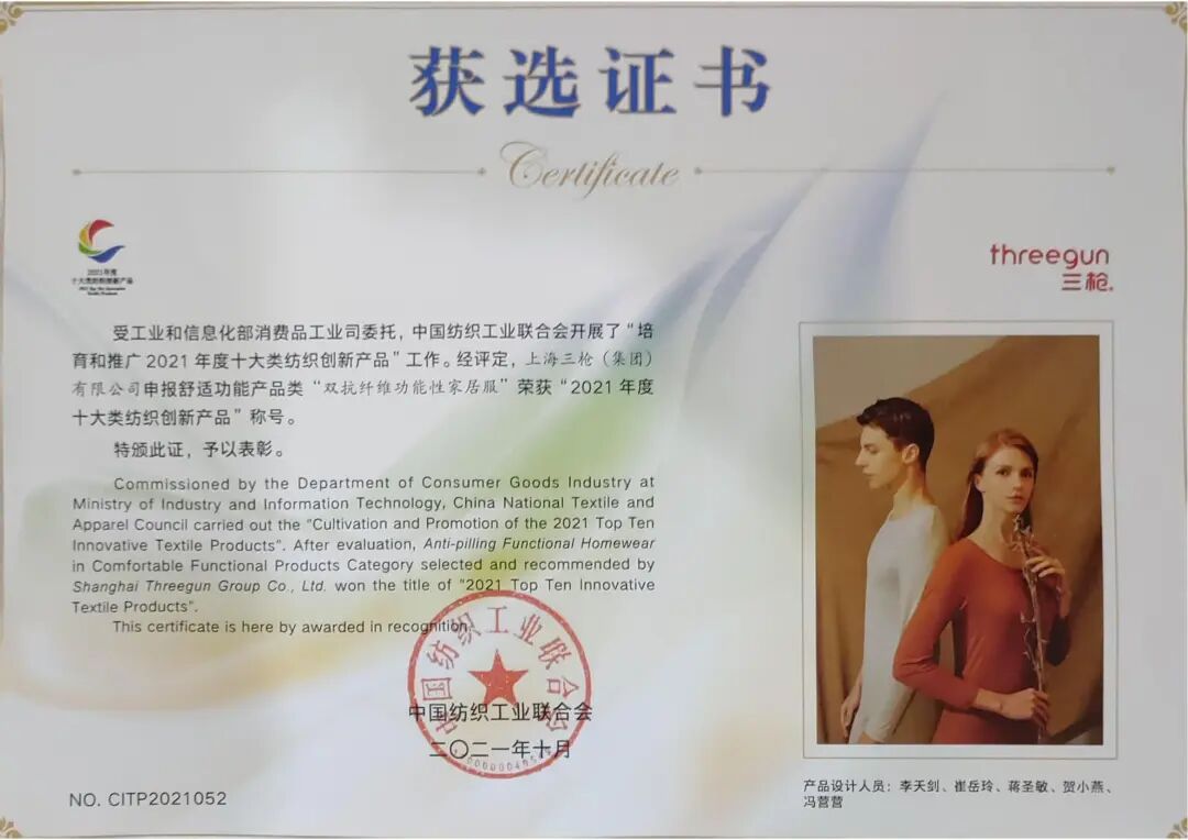 三枪已连续四年荣获“十大类纺织创新产品”称号——