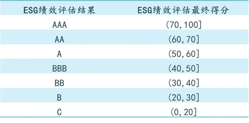 为保证中国纺织服装行业ESG评估的客观性和可比性,本方法论的指标赋值遵循定量和客观原则。在前期大量理论分析的基础上,结合获取到数据的特点,以均衡、适用原则设置各指标的权重,自下而上计算加权得到一级指标、二级指标的分项得分,最终计算出ESG评估综合得分。得分越高,说明参评主体绩效表现越好。