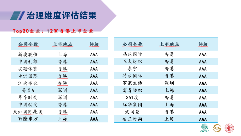 为了提升评估结果的科学性和有效性,中国纺织工业联合会社会责任办公室将持续跟踪行业上市企业的ESG绩效表现,并对其ESG评估结果进行修正。相关成果请登录中国纺织服装行业ESG公共服务 & CSC9000T会员平台 (点击下方“阅读原文”进入平台)。