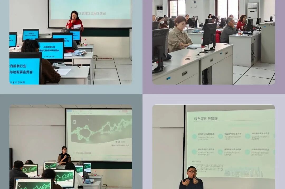 为进一步帮助纺织服装企业绿色供应链管理工作的推进,展示企业绿色发展理念,体现企业社会与行业责任感,推动行业绿色低碳循环发展、培育绿色市场。2023年12月20日,协会与上海市质量监督检验技术研究院联合在上海市就业促进中心成衣实训室,召开了《绿色可持续发展宣贯会》,龙头股份、东方创业、上服集团、东隆羽绒、塔汇针织等企业高层管理人员共计30余人参加会议。