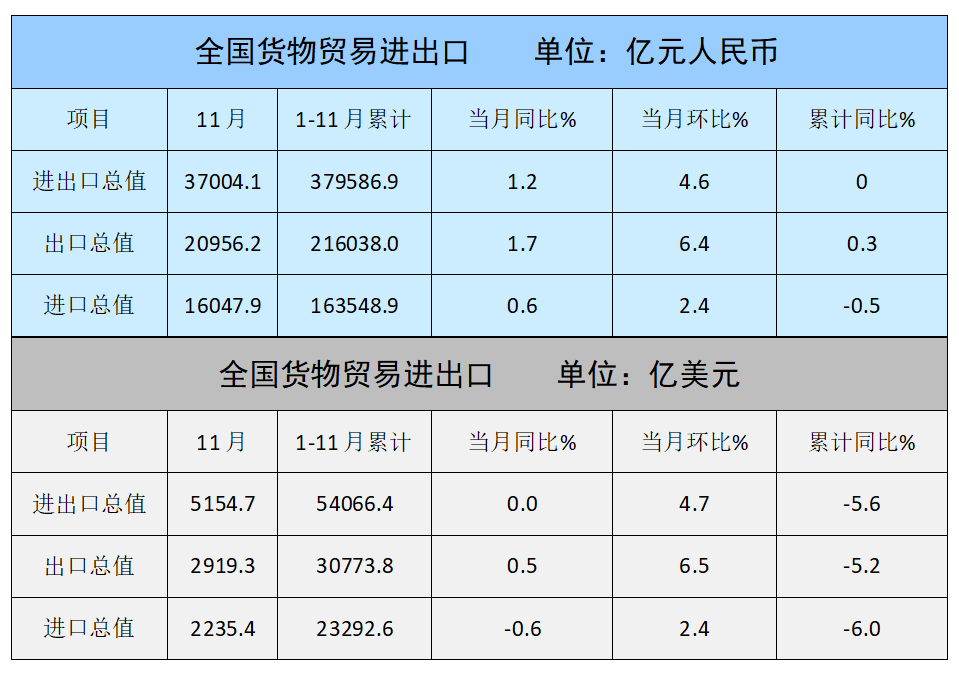 数据|11月纺织服装出口降幅进一步收窄,整体呈现回稳态势