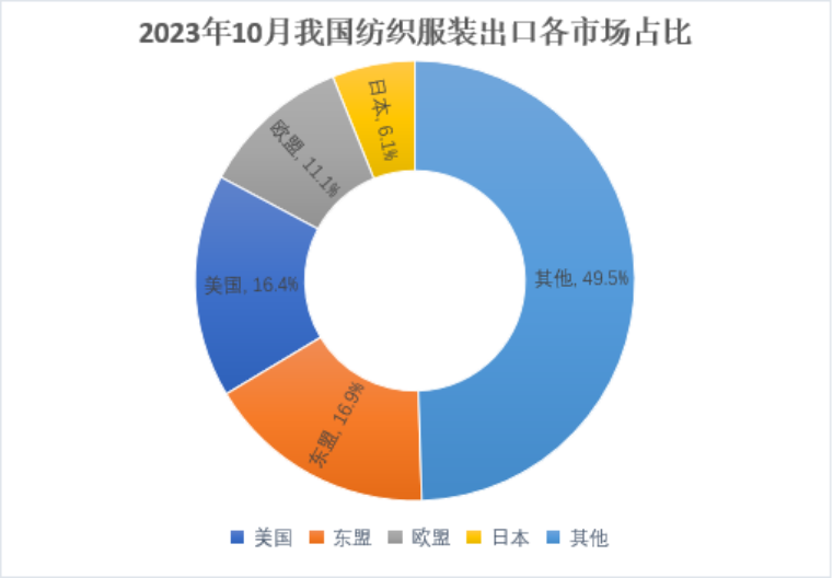 对美出口连续两个月增长,对东盟纱线面料出口降幅连续三个月收窄,非四大传统市场占我出口比重接近50%。