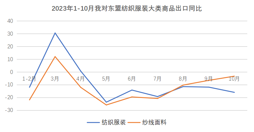 (二)对东盟纱线面料出口降幅连续第三个月收窄。