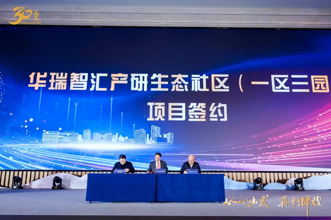 江宁开发区管委会、南京航空航天大学、华瑞时尚集团签订战略合作协议,将共同建设华瑞智汇产研生态社区(一区三园)项目。华瑞智汇产研生态社区以项目挖掘、孵化加速、培训赋能并提供专业服务为抓手,为重大项目和重大平台落地提供空间载体,打造新城市创新链、新产业融合链、新办公生态链、新场景服务链、新企业成长链,为集聚高端人才和优秀企业创造良好条件。