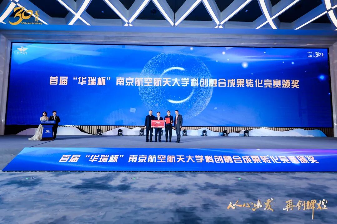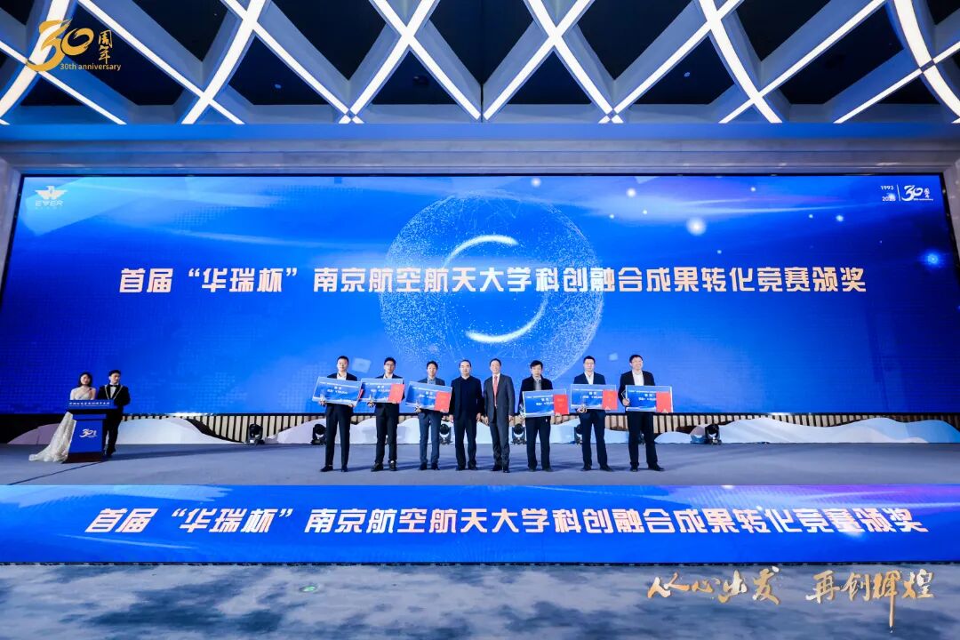 相关领导为“华瑞杯”首届南京航空航天大学科创融合成果转化竞赛获奖项目代表颁奖,华瑞时尚集团与其中的新型特种共轴无人机系统、金属导管三维自由弯曲成形技术及装备、脑控融合自适应VR/AR飞行模拟驾驶系统等三个项目,签订投资框架协议,签约项目进行了路演。