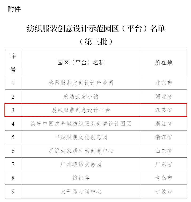 第三批纺织服装创意设计示范园区(平台)名单公告,晨风服装创意设计平台上榜!