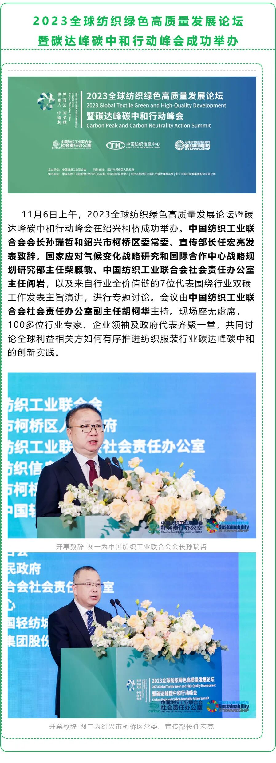 2023全球纺织绿色高质量发展论坛暨碳达峰碳中和行动峰会成功举办