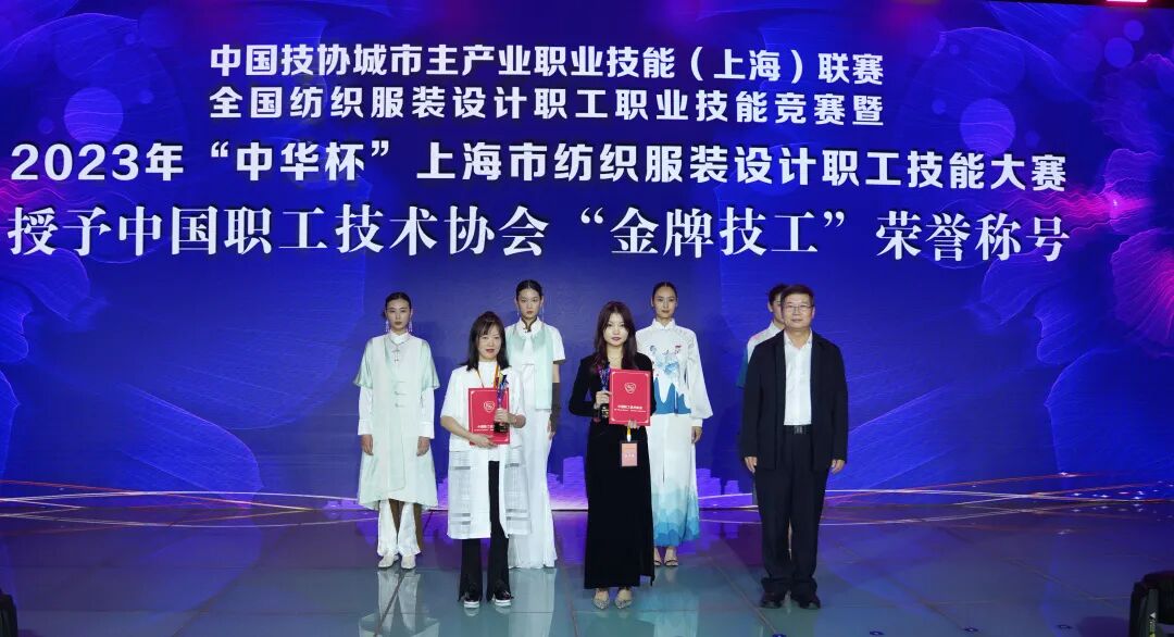 最终,王晓娟的服装设计作品《雀瑶》、顾沁晟的《苏州河畔》摘得一等奖,琚昕、王菲、曲艳凤、刘玉婷等四人分获二等奖,钱晨等10人获三等奖。同时,一、二等奖选手被分别授予中国职工技术协会颁发的“金牌技工”和“银牌技工”荣誉称号。