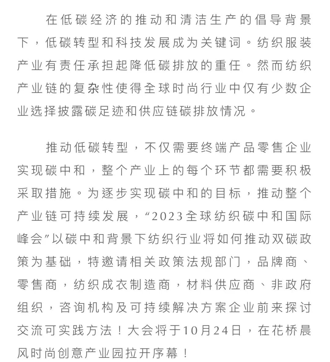 倒计时3天|2023全球纺织碳中和国际峰会将于10月24日开启大幕!