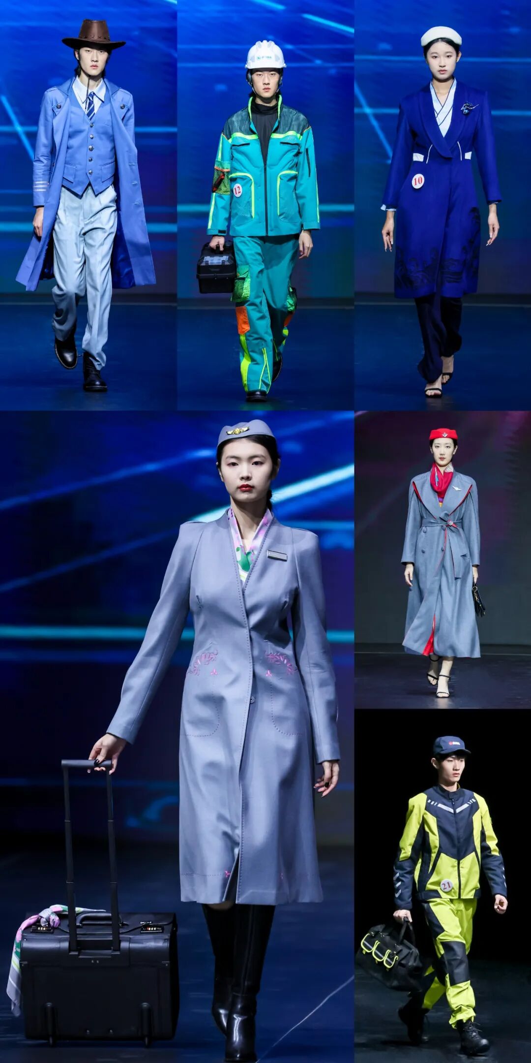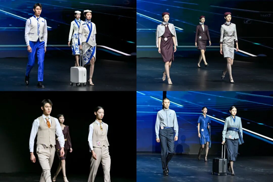 决赛现场,33组作品按照航空、铁路、水路、城市轨道交通四个类别依次进行展示,别出心裁、匠心“护航”的设计作品为全场的观众们营造了一场与交通运输行业制服创新对话的视觉盛宴。专家评委们也结合作品的最终舞台表现,对其进行了现场打分与专业点评。