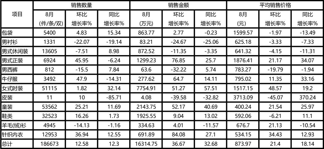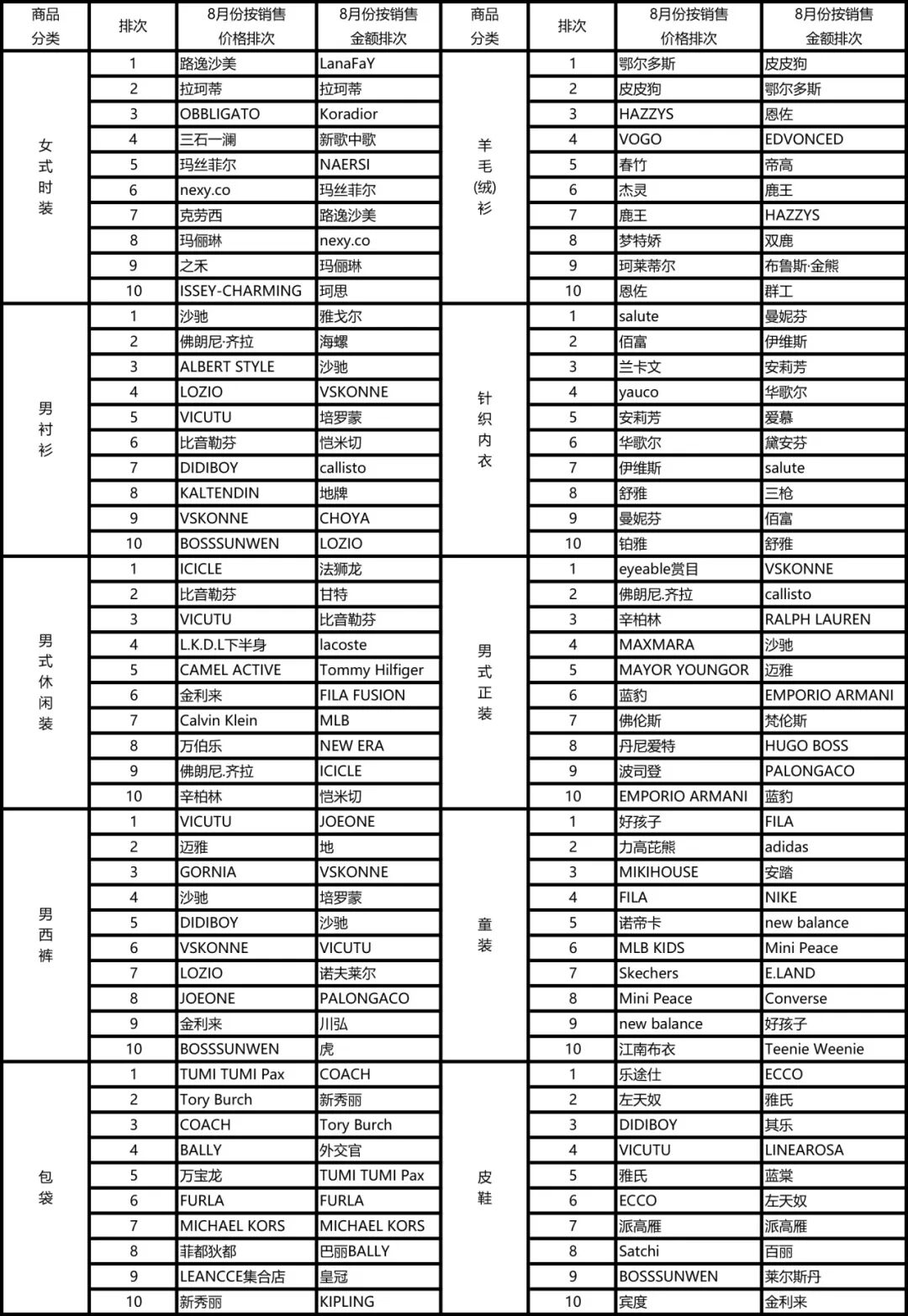 点击蓝字关注我们— 2023年8月份 —上海服装行业协会网络商场销售情况上海服装...