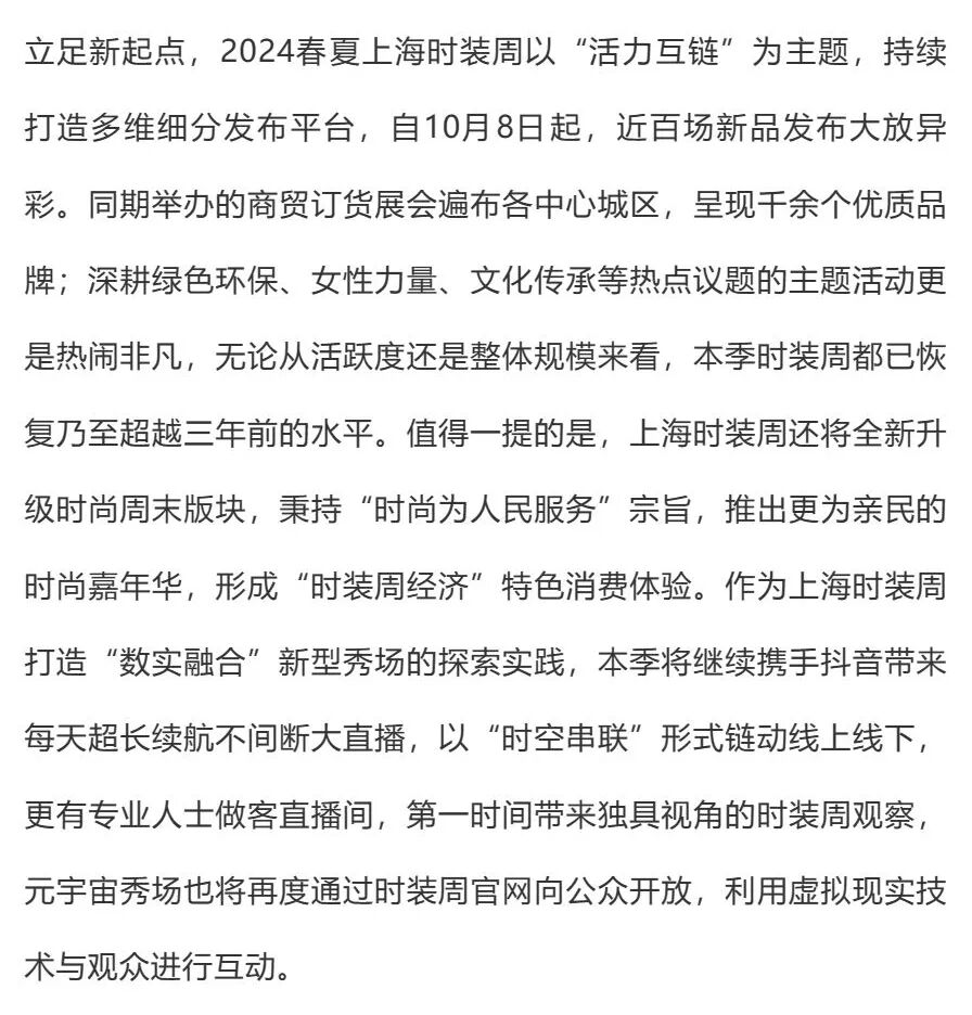 活力互链,重塑行业图景:2024春夏上海时装周迈入新征程