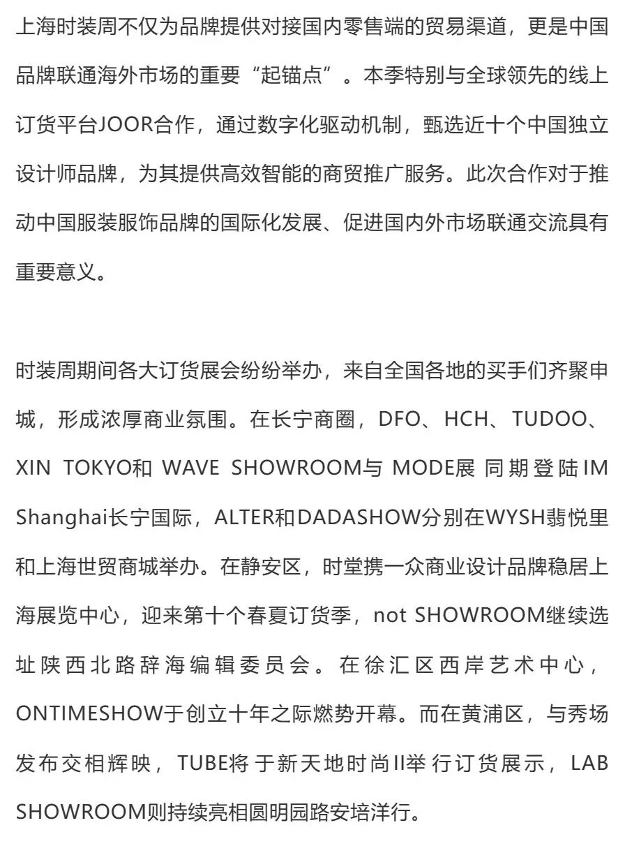 [温馨提示] 文章来源于上海服装行业协会公众号,转载注明原文出处,此文观点与查生意无关,理性阅读,版权属于原作者若无意侵犯媒体或个人知识产权,请联系我们,本站将在第一时间删掉 ,查生意仅提供信息存储空间服务。
