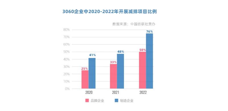 三年来,在自身运营范围内开展减排项目的企业由37%上升到2022年的68%,制造企业这一比例高达76%。