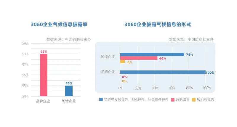 大部分企业已设立气候目标并披露,特别是制造企业中93%企业已设定气候目标。分别有42%和86%的品牌企业和制造企业已制定企业气候战略规划,并分别有80%和56%的品牌企业和制造企业已建立气候管理体系推进相关工作。