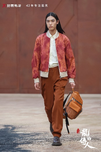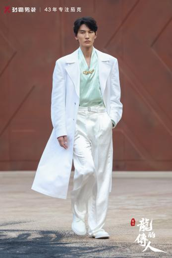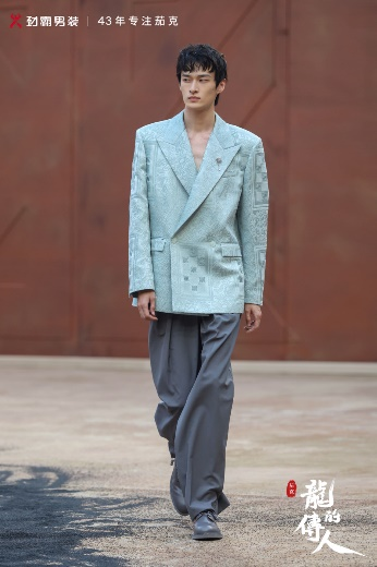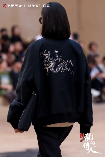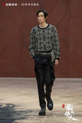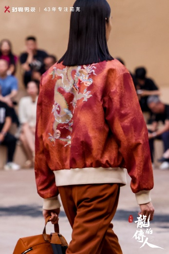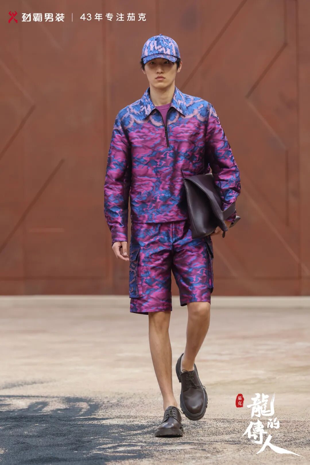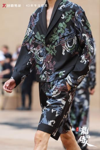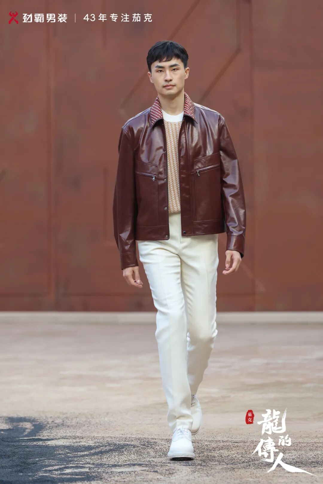 以四年五次登陆米兰时装周官方日程的劲霸男装高端系列KB HONG为例,以当代设计重建跨越数千年的东方图腾——玉龙纹,呈现出当代男士谦逊优雅、卓然不群、刚劲有力的风貌。而在劲霸男装全球首创且唯一的茄克品类专场秀历年秀款中,既有与千年非遗华县皮影戏合作,用现代时装让非遗瑰宝活化焕新;也能以泉州市花刺桐花、上海市花白玉兰为蓝本原创花型,让中式艺术人文美学融入中国茄克;还能巧妙运用中国山水、水墨写意、编织、生肖等中式符号,让传统意境之美跃然呈现。这些传承创新的尝试,都融合成为当代男士以文化为引、以时尚为媒,对话世界的新服饰美学。本次中原大秀,应和即将来临的龙年,不同形态的龙的设计展现,成为劲霸男装深化东方气度在新时代的实体化书写亮点。从大秀开场糅合太极意象的现代舞《溯·问》“画土为龙”,到秀款中不同面料上呈现的多形态设计表达,让龙纹成为新时代东方气度的时尚符号,即展现当代男士审美品位与内在个性,又满足消费者通过衣服自我肯定的文化自信,更是成为劲霸男装赋予中国茄克更具中国风貌生命力的标志性纹样。