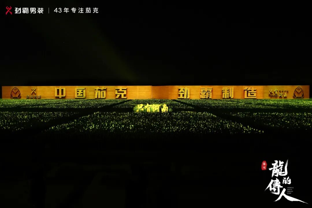 9月9日,99套秀款,令人不由地想到一则名句:“玄生万物,九九归一。”这既有完美和圆满的意思,更道出了中国文化中最核心、最深刻的哲理:世间万物,无论行至何处,最终都将复归本源。此次2023劲霸男装茄克品类专场秀,特意将秀场选在了中华文明的“祖源”之地河南。“只有河南·戏剧幻城”作为这场大秀的落脚之处,也是著名导演王潮歌精心打造的中原历史文化精神传承之地。厚积千年的黄土、现代化的声光电视觉效果、21个沉浸式的历史文化戏剧,本身即是历史与现代交织讲述,传承与创新“搭档”演绎的绝佳文化传承体验之所。来自黄河的215立方米的黄土,四面夯土墙上中原大地18个地市、100多个县,以及1700多个乡镇的名字.....穿过百亩高粱地,进入这样一个场域,把我们带到的不再仅仅是一个秀场,而是更大更深邃的心灵与时空的对话,对祖先文明的回望敬仰和“我从何处而来,又将去向哪里”自我追问的思考。服装大秀的时尚表达与对文化根脉的传承礼敬,生命个体的存在感知与历史时代的融合并存在这里同时上演,于天地方圆间,在充满历史长度和文化厚度的中原厚土里,这场大秀如同在文化根脉上叩问当代风尚的灵感缘起。其实,答案早已印刻在这一方黄土里,这是黄河流过的土、这是生长麦田的土、这是祖先庇佑的土、这是孕育文明的土、这是生你养你的土、这是生我养我的土......我就是我们,我们是“龙的传人”。对于每一个中华儿女来说,龙,是我们共同的文化图腾;龙的传人,也我们共同的身份认同,传承五千年的文化和精神,代代劲行。正是基于此,劲霸男装以民族精神共鸣和文化寻脉共探为号角,发出传承与创新的呼唤。以一场时尚大秀,将中华文明在当代服饰风尚中浓缩呈现,从过去走来,到新时代的创新性传承的新表达;从历史中来,到生活里去,承东方之美学,最显性却又深刻的意指。事实上,新时代的中国服装行业和中国服装品牌,也正需要这样一场大秀。在大国崛起的第二个百年奋斗目标行进道路上,产业崛起、文化崛起是无法绕开的长远之途。对于任何一家企业来说,这既是产业召唤,也是文化召唤。每个行业都需要涌现一批杠旗者,以高质量发展,引领国货争雄国际;以文化自信、文化创新,为国家软实力的提升添砖加瓦。文化赋能产业,产业传承文化,两相融合,方能释放出巨大的时代发展动能。与此同时,民族自信和中华文化昂扬的背后,也迫切需要一个时尚文化与消费产业的集大成者,以其广受认可的代表性符号,及其背后一套共同的语言体系,让中国力量能够满足公众的表达需求。这两者最好的解决方案不在别处,就藏在中华民族五千年历史的厚重积淀里。龙的传人,薪尽火传,代代劲行,这也是一个民族文化赓续、繁荣,获得持久生命力的根本路径。它的生命力,就在于赋予了这个民族产业创新的独特密码。劲霸男装,正是无数传递薪火者中尤为突出的一员,是以匠心劲行于心的中国品牌。勇担文化自强、产业自强的时代使命,深入践行文化传承与创新,早已是劲霸男装极为显著的品牌底色。它43年一以贯之创制并不断拓展中国茄克,制定修订中国茄克行业标准,持续通过品类升级、叙事升级诠释东方美学,创新性传承非遗瑰宝中的独特审美,融合文明多样性的,书写“中国茄克”、“中国人的茄克”故事,为中国的消费者提供新时代的服饰风尚表达。尤其2021年,劲霸男装前瞻性提出“高端新国货”战略,自信发声“中国茄克 劲霸制造”。“高端”,意味着始终坚持以产品为核心,丰满中国高端品牌的内核,甄选面料、创新工艺,以高品牌影响力和强产品实力引领行业发展;“新国货”,则意味着以中国文化的深厚底蕴为基,适应国人着装和消费需求,与时俱进创新创变,引领当代男士着装美学,彰显当代男士“中国气度“。依托中国茄克色彩研发基地及国家级茄克实验室,劲霸男装不断实现自我突破,全面焕新当代男士的茄克时尚穿搭,将当代中国男士的时尚品味与东方气度淋漓尽致的展现出来。在匠心创造的加持下,劲霸男装以具有“新色彩、新廓形、新材质、新风格”的产品,呈现东方美学的当代性独特审美,加持“龙的传人”对服装的时尚感、个性化、艺术化需求。每一个像劲霸男装一样矢志文化传承与创新,助力民族话语权表达的时尚品牌,都必然面对的一个问题是:如何理解、演绎与传递中国传统文化和东方美学,使之与时代潮流和品牌精神相得益彰,从而在新的社会、产业土壤中持续焕发新的生命力?