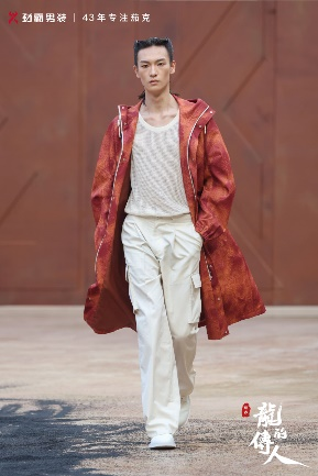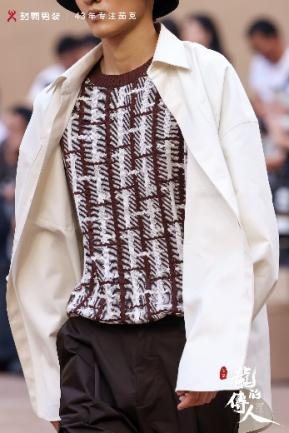 非遗意韵,焕彩感知。中国工艺美术大师,国家级非物质文化遗产项目(渠县刘氏竹编)代表性传承人刘嘉峰亲手编制的经纬纹理竹编跃然于当代男性服饰,局部秀款以四川省工艺美术大师,国家级非物质文化遗产项目(渠县刘氏竹编)省级代表性传承人刘江老师手工编制的配饰点缀,是传承的温度,更是绵延的龙的传人的精神信仰;从宋代五大名窑之一的钧瓷中汲取配色和面料选择的灵感,以“重彩美”为创作之源,感知鲜活而纯粹的灵动力量。