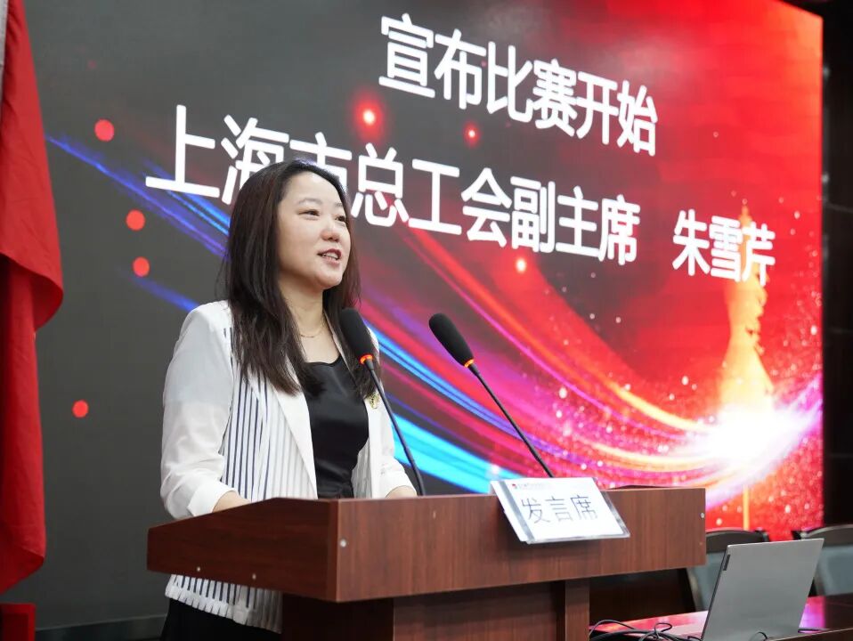 上海市总工会副主席朱雪芹宣布大赛开始