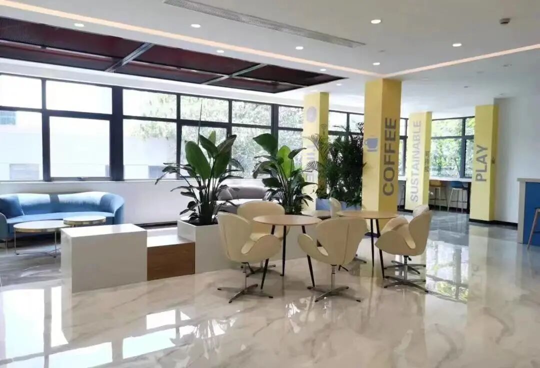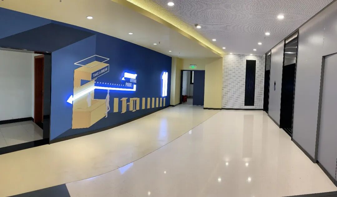 上服T PLAY数创园的占地面积并不大,以“小而精”为特点,麻雀虽小却五脏俱全,配套设施完善、地理位置优越。园内办公楼的前身为“上服虹桥都市科技园”,主要面向中小型科创企业,助力产业孵化。经设计师的精心打造后,整个园区以“时尚+科技”为主题,通过场景营造注入氛围感,呈现出一个现代都市化创意办公空间。